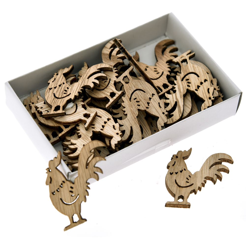 Αυτοκόλλητο κότα σε φυσικό ξύλινο στοιχειο. Σετ 24 τεμάχια. Διαστάσεις περίπου 5-6 CM.