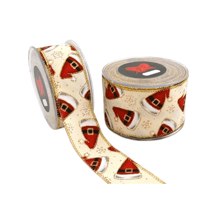 Κορδέλα πολυεστερική με στρας με καπελάκια Άγιου Βασίλη , σύρμα στο τελείωμα.