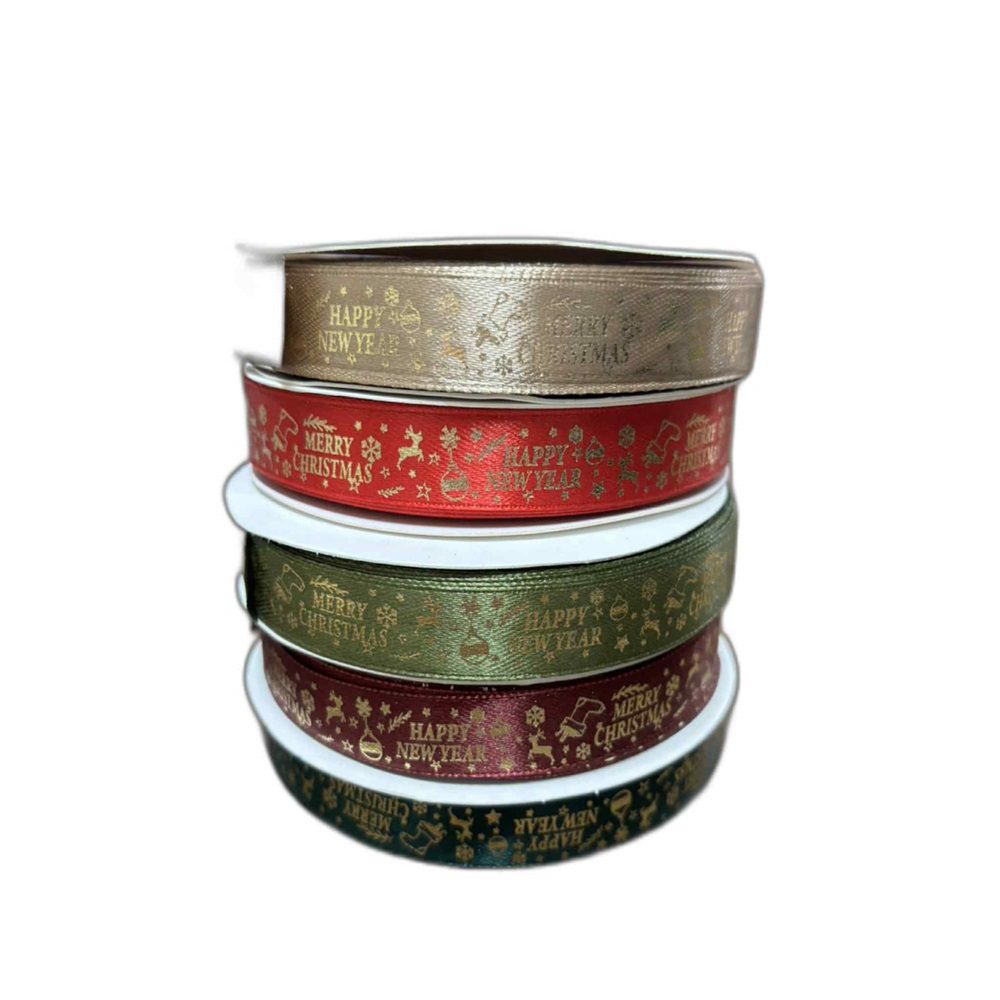 Κορδέλα σατέν με χρυσοτυπία  “Merry Christmas” . Διαστάσεις 15mm x 50m