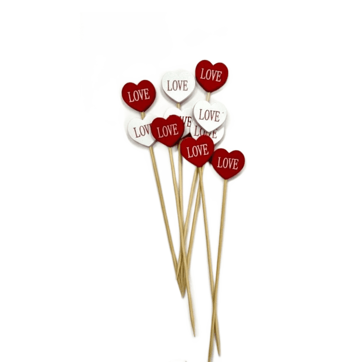 Στικ καρδιές λευκές κόκκινες μιξ, 20 τεμάχια στη συσκευασία. Μέγεθος καρδιάς 2cm, ύψος 13cm.